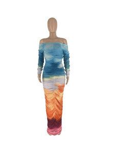 Home>All Categories>Women's Fashion>Dresses>Printed One Line Collar Stacked Sleeve Wrapped Hip Dress